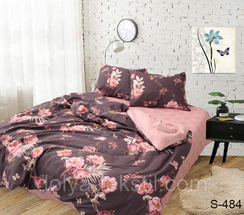 Сатин 1,5-спальна постільна білизна ТМ TAG S484 з компаньйоном